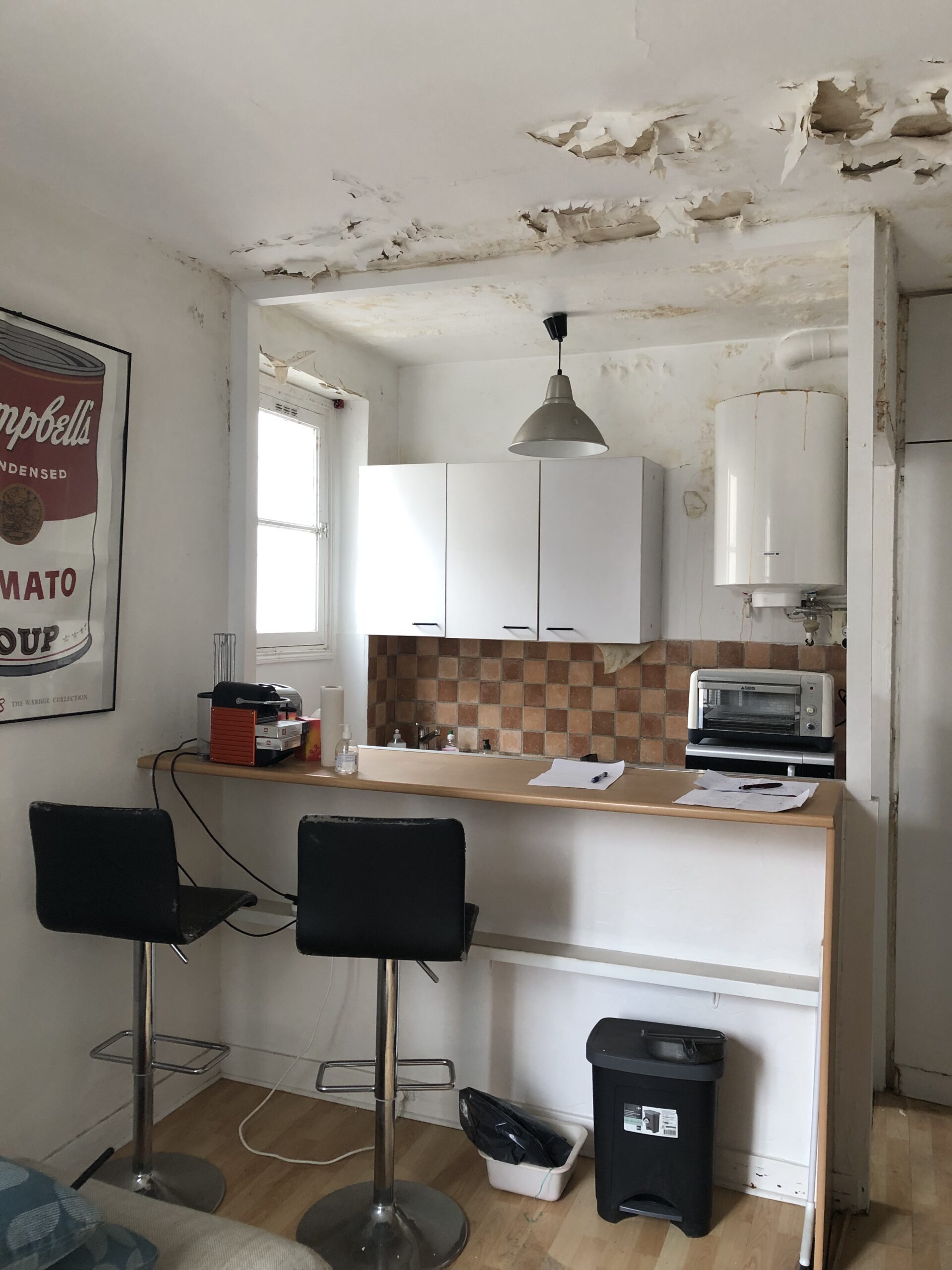 Suite à un important dégât des eaux, cet appartement parisien de 29 m² a fait l’objet d’une restructuration complète.