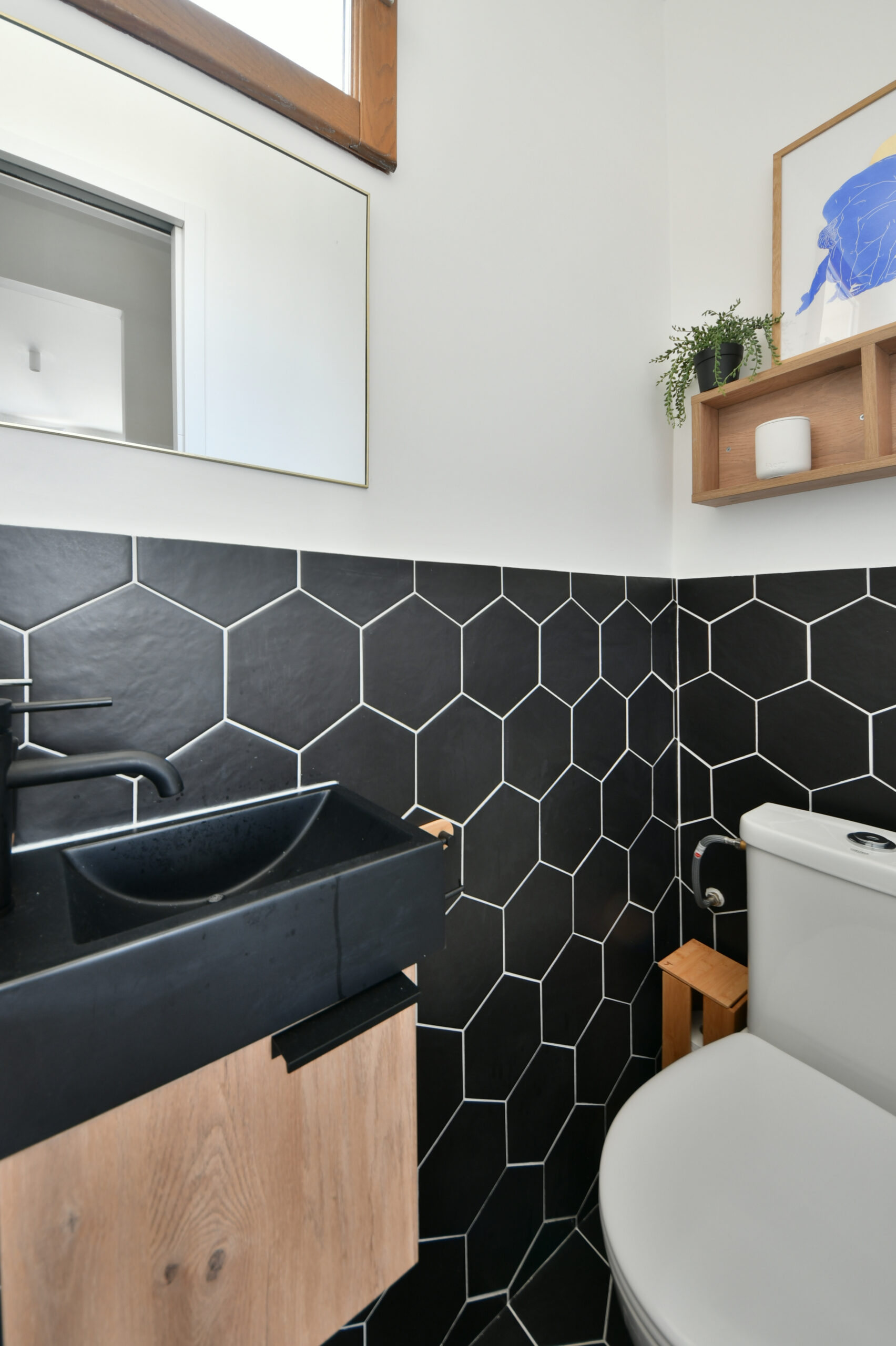 Nous avons gagné de l’espace sur les parties communes en récupérant l’ancien wc commun et réagencé l’ensemble du lot.