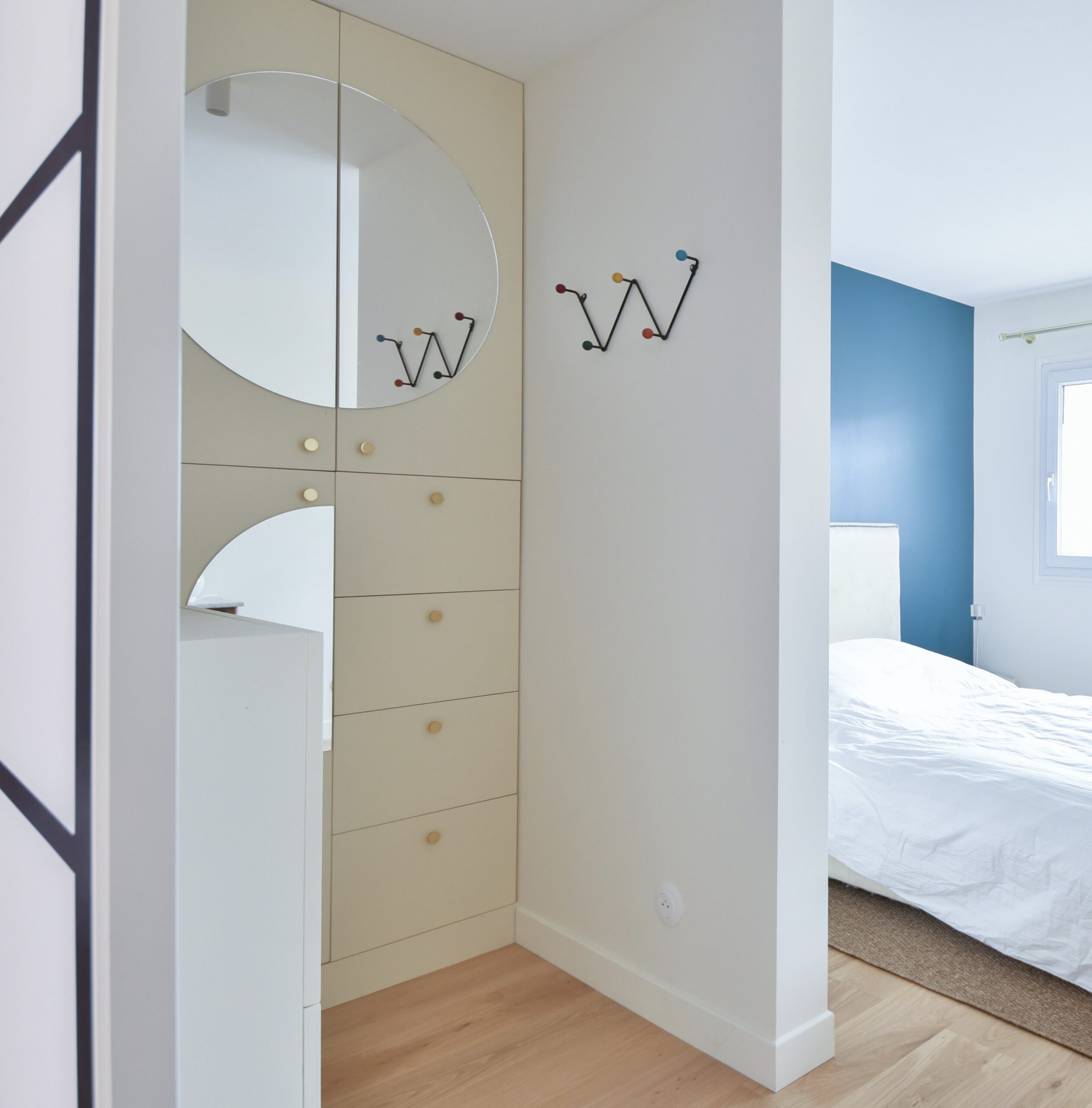 Une association de matériaux naturels et de couleurs apaisantes pour une ambiance douce où la lumière se diffuse totalement.