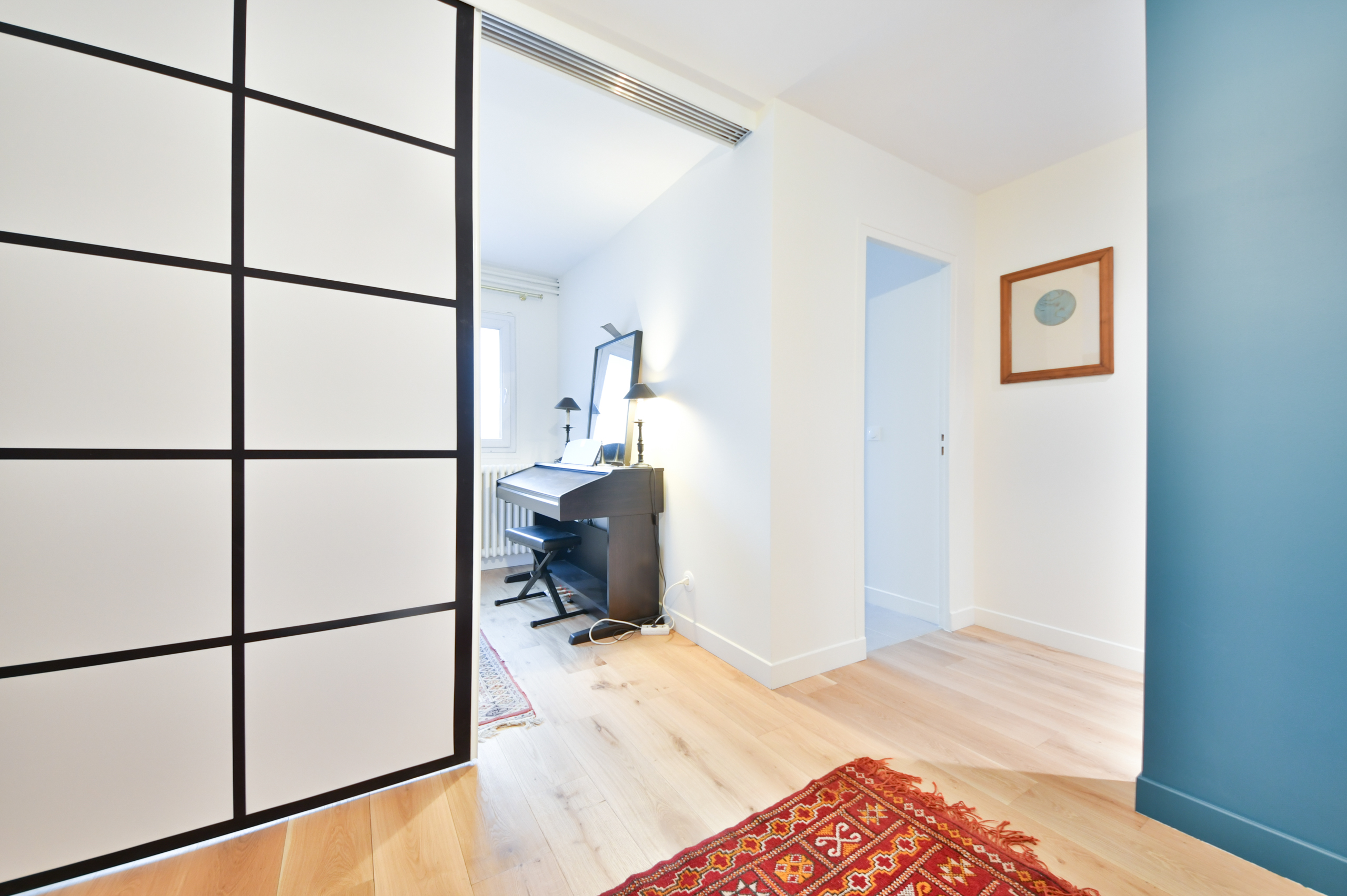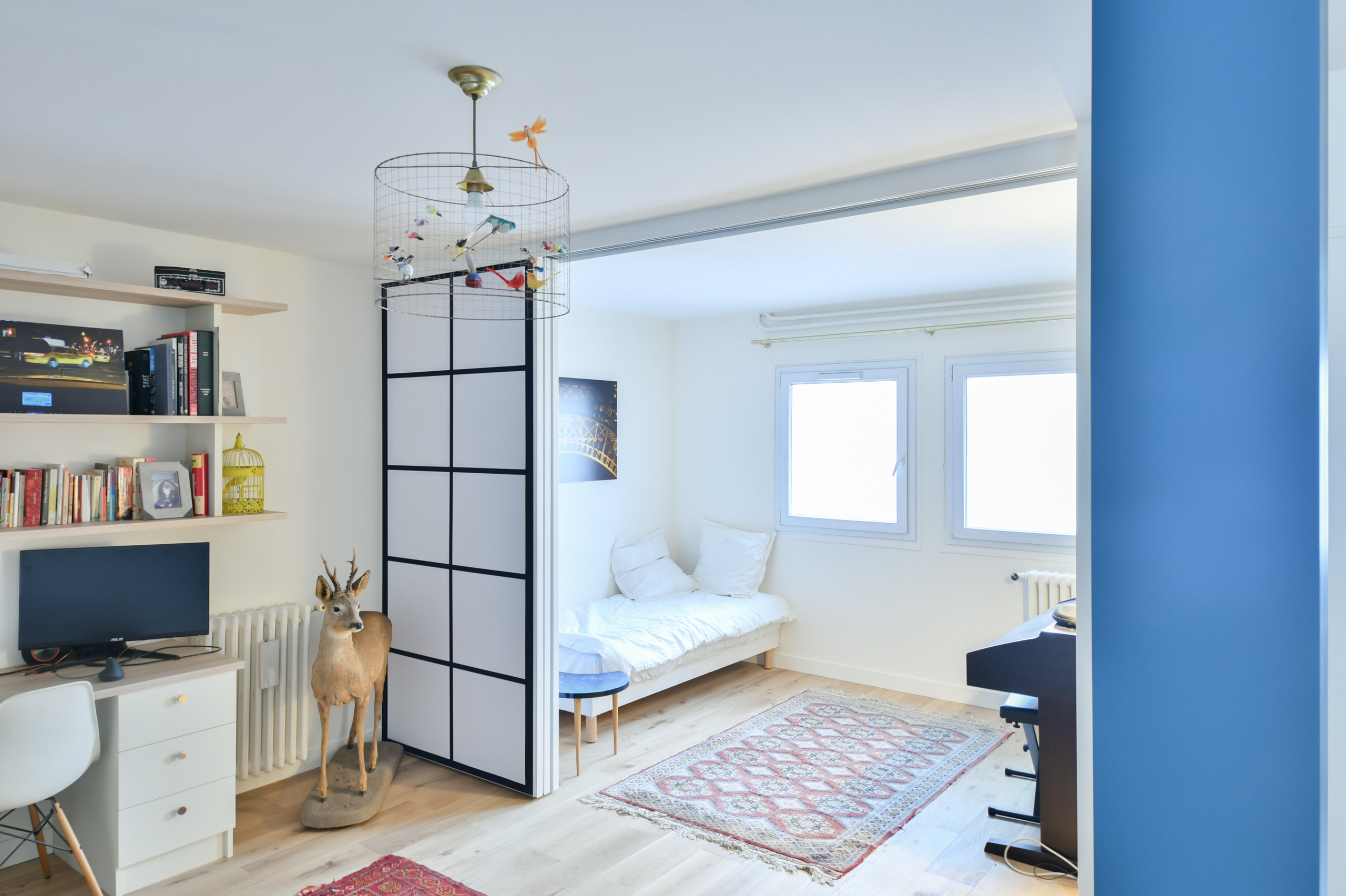Les cloisons de l’appartement ont été remplacées par des panneaux coulissants japonais.