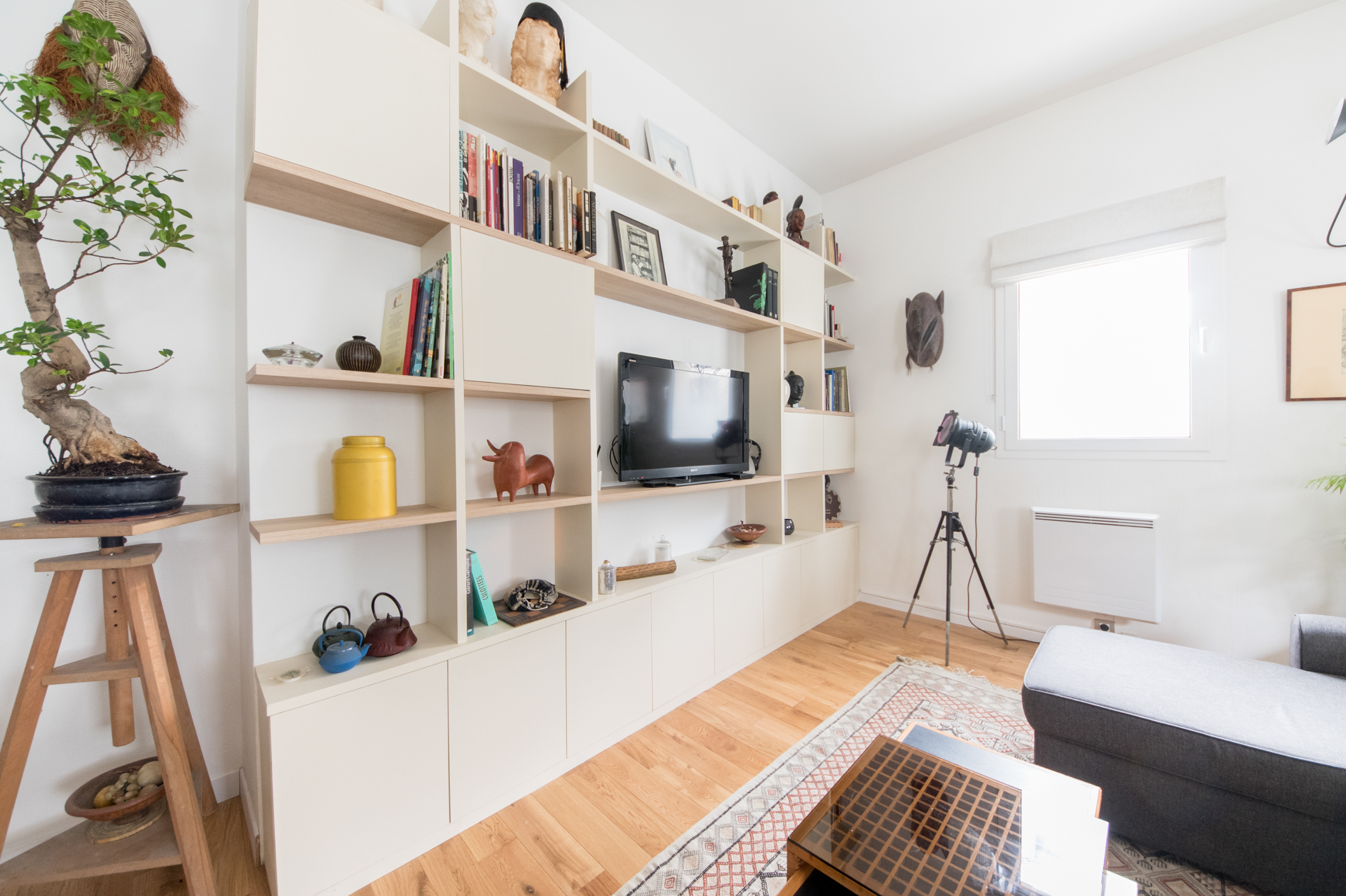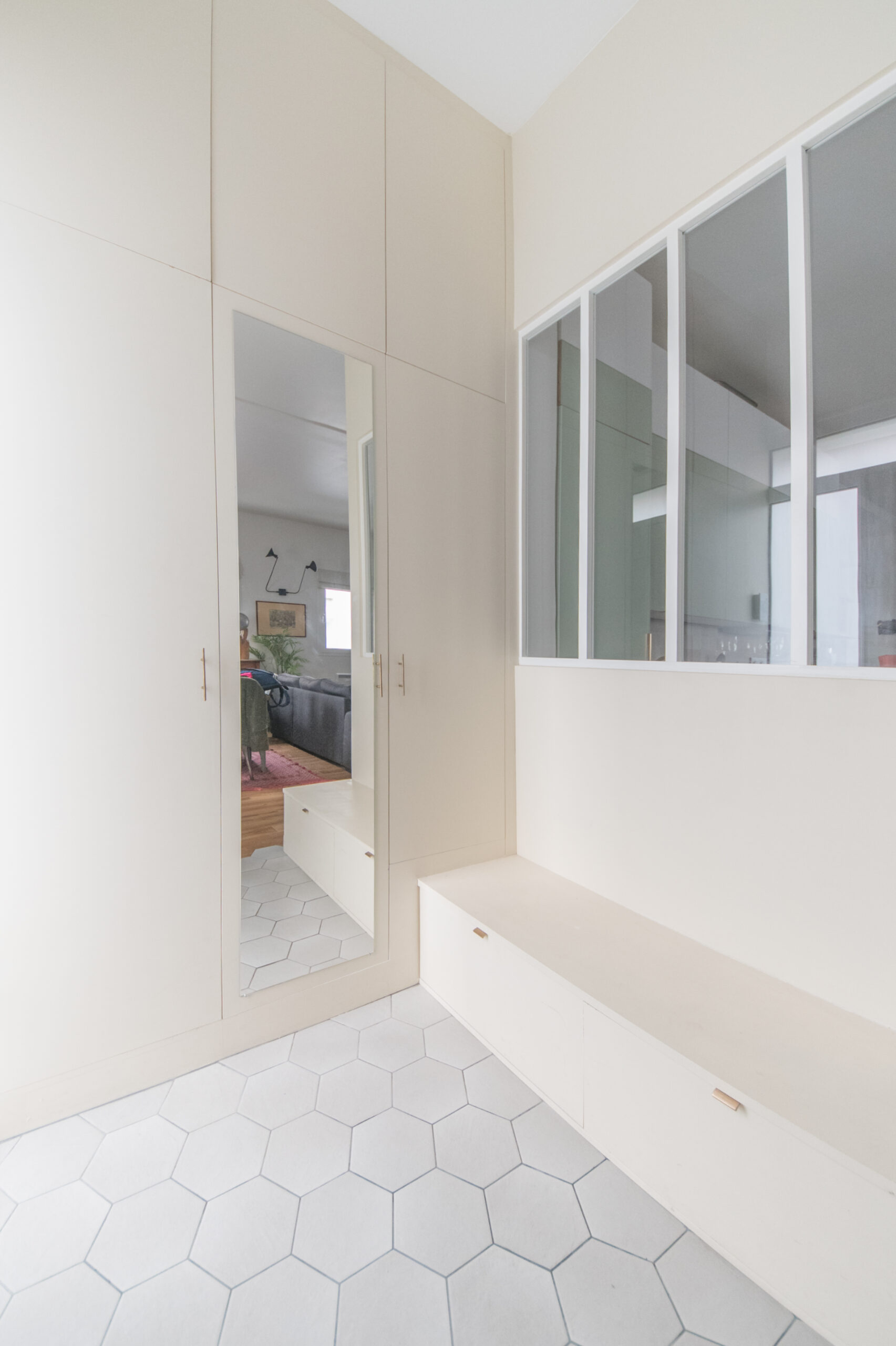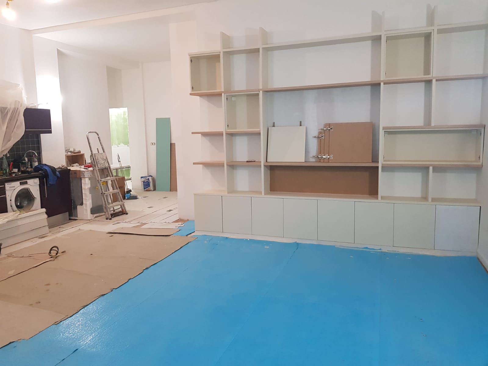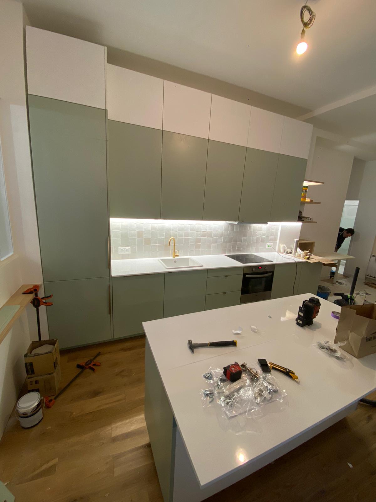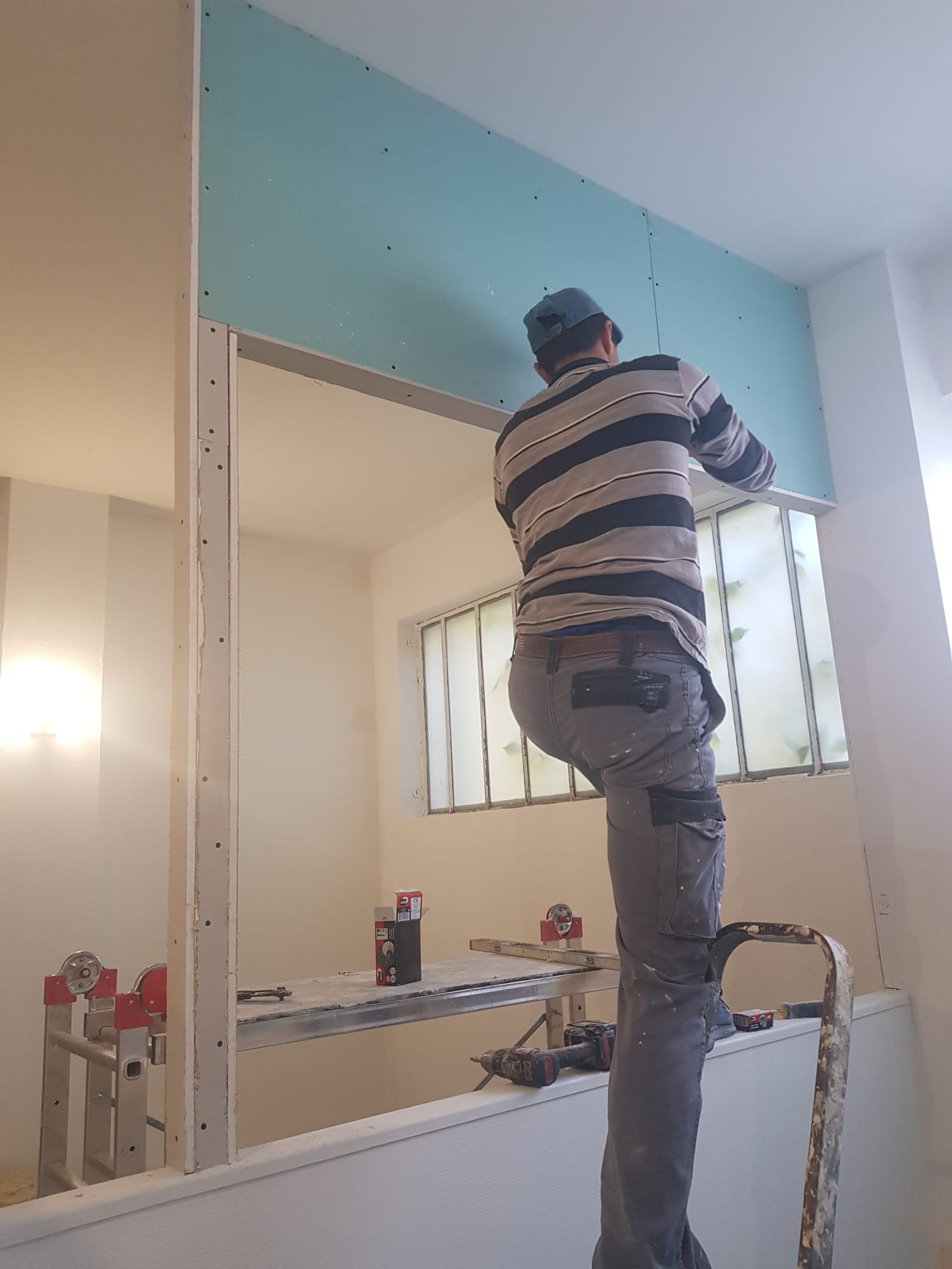 Loft 80m2 Rénovation totale d’un appartement de 80m2. L’idée ici était de jouer avec des nuances de couleurs claires pour apporter un max de lumière. Avant Pendant Après Notre expertise On se charge de la rénovation tous corps d’état de vos biens : De la démolition, à la mise aux normes de l’électricité De la plomberie, à l’installation de la cuisine et de la salle de bain À la peinture et aux menuiseries sur-mesure Admin1656