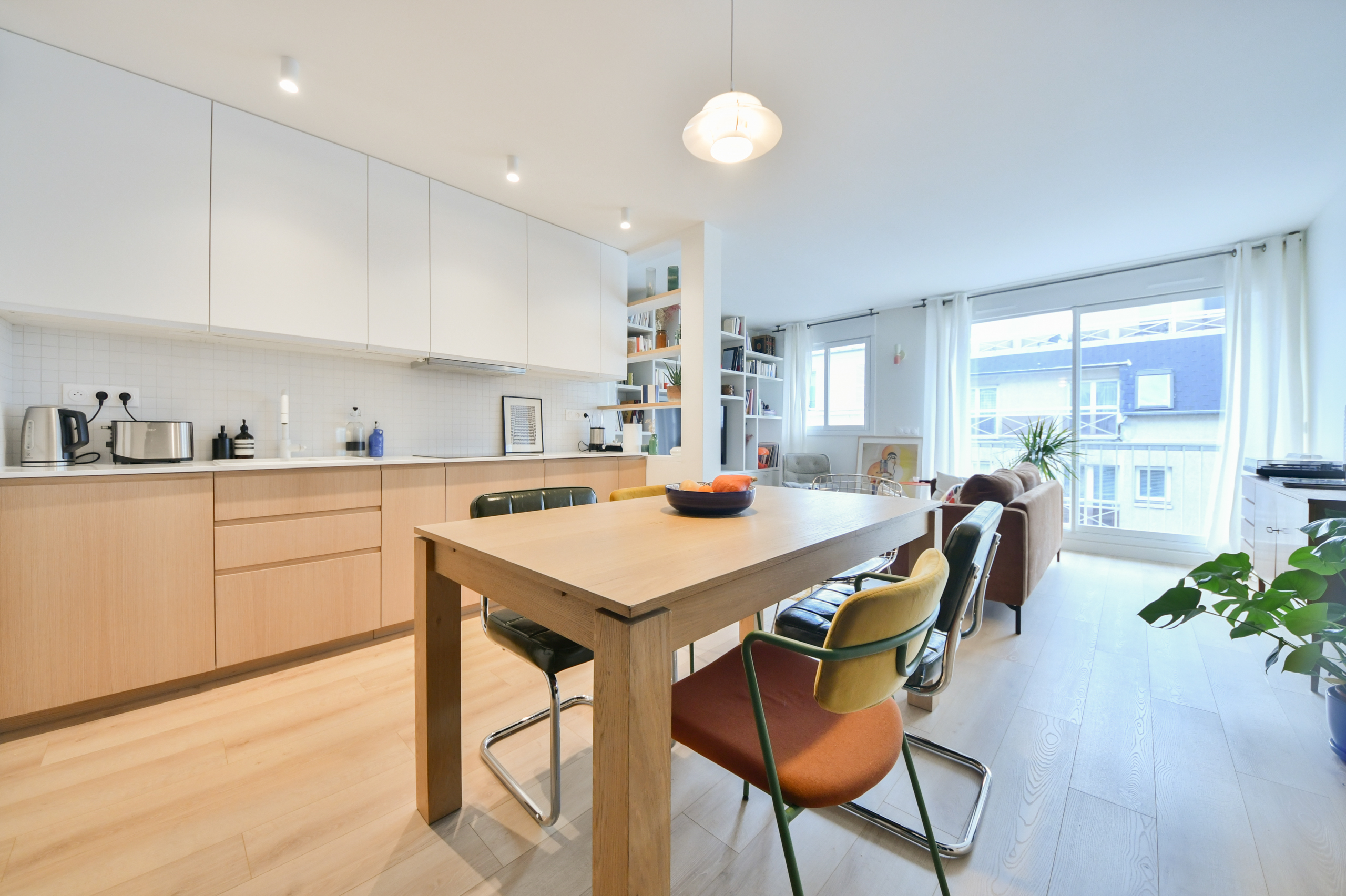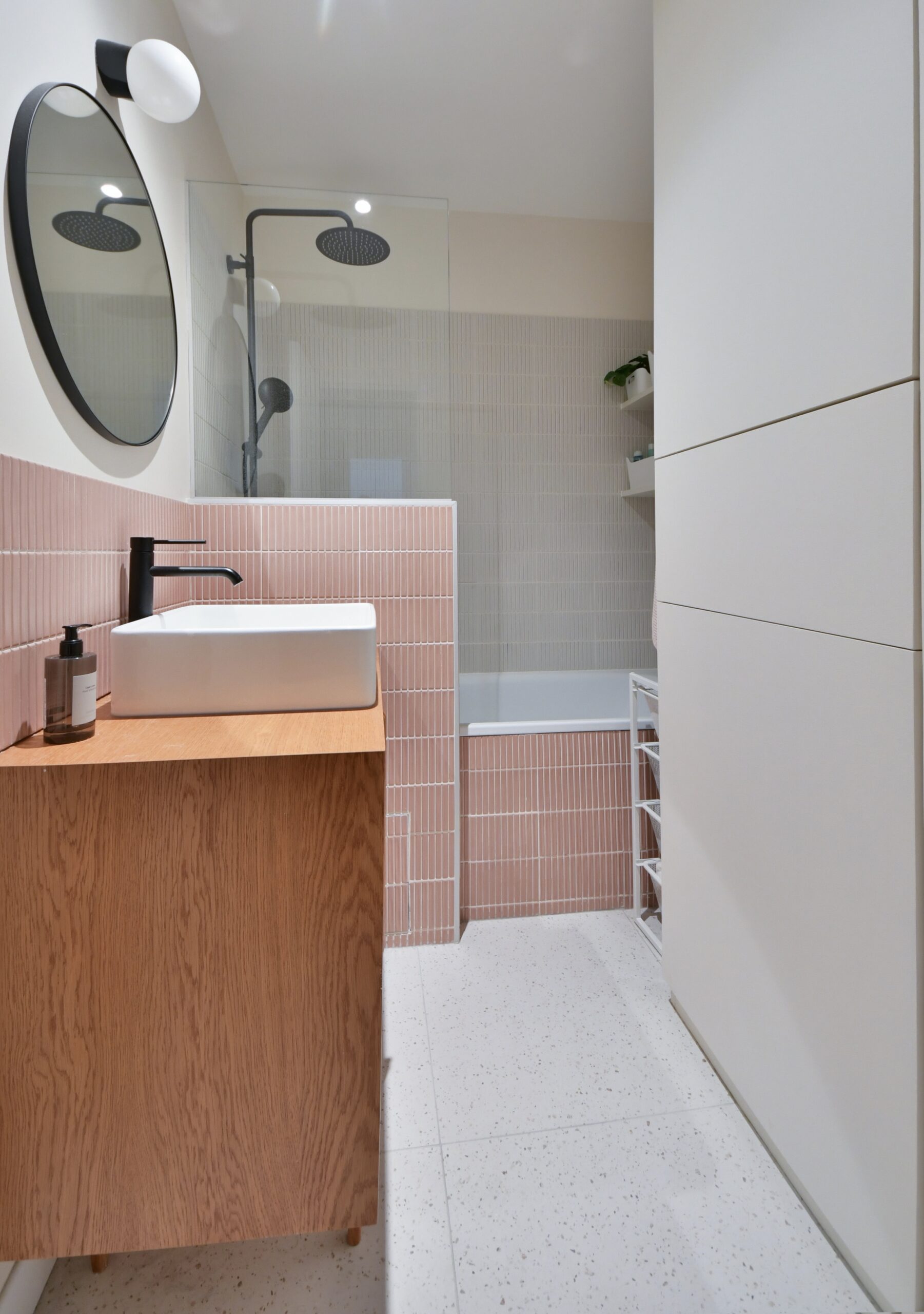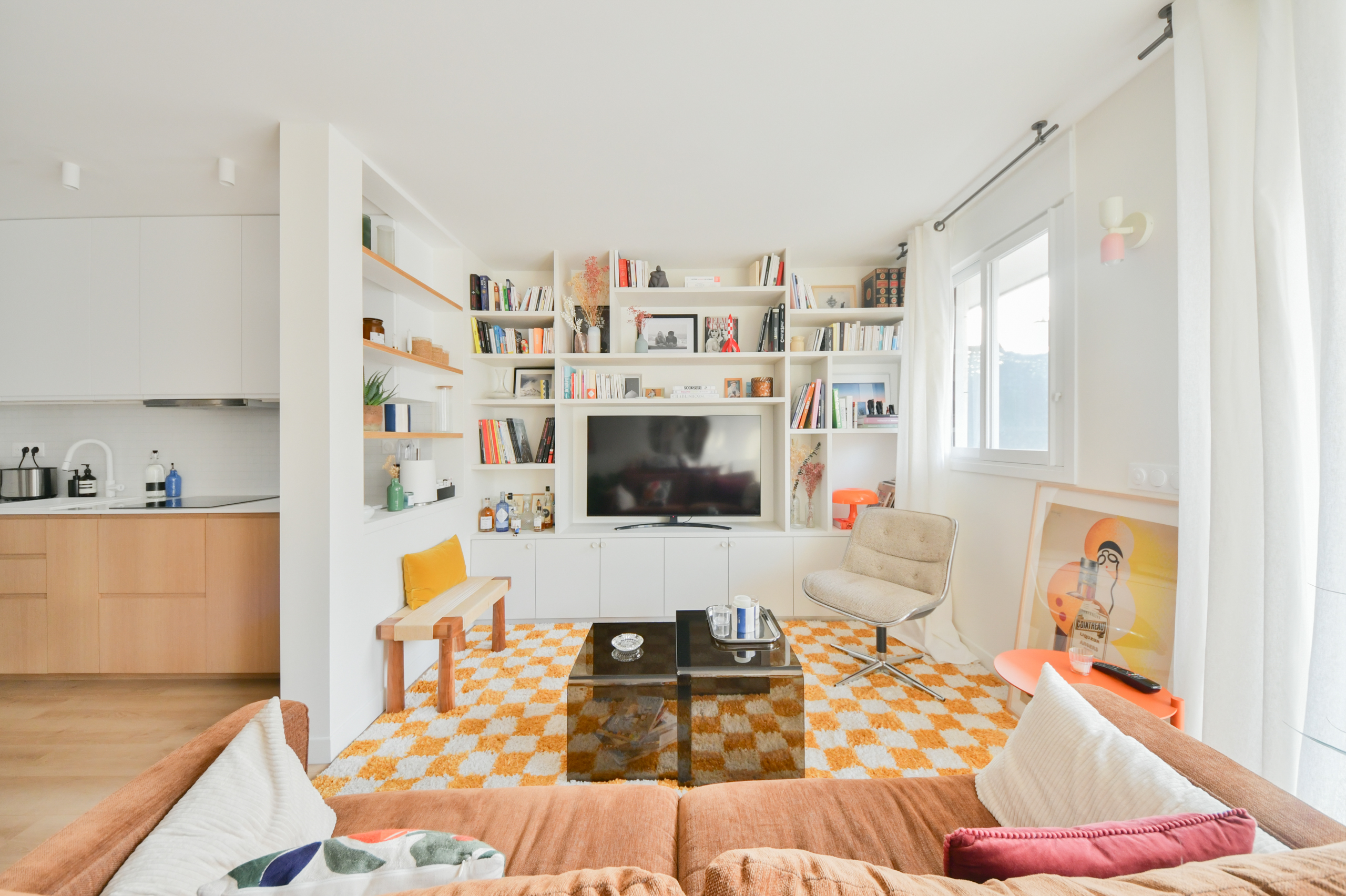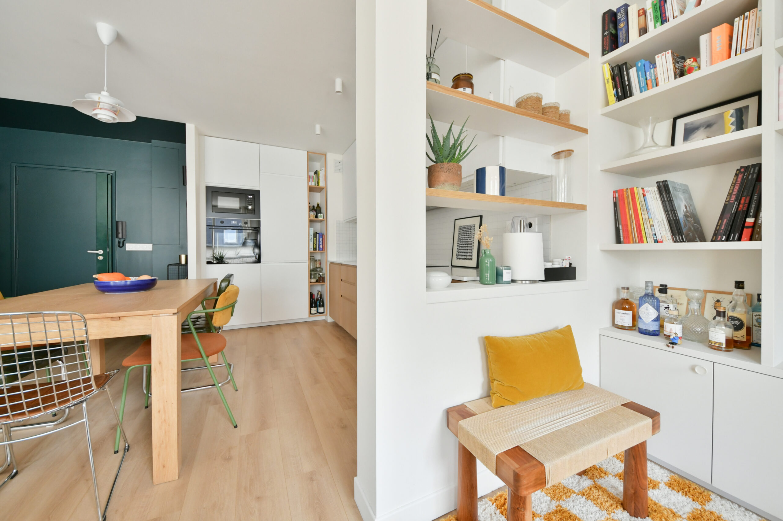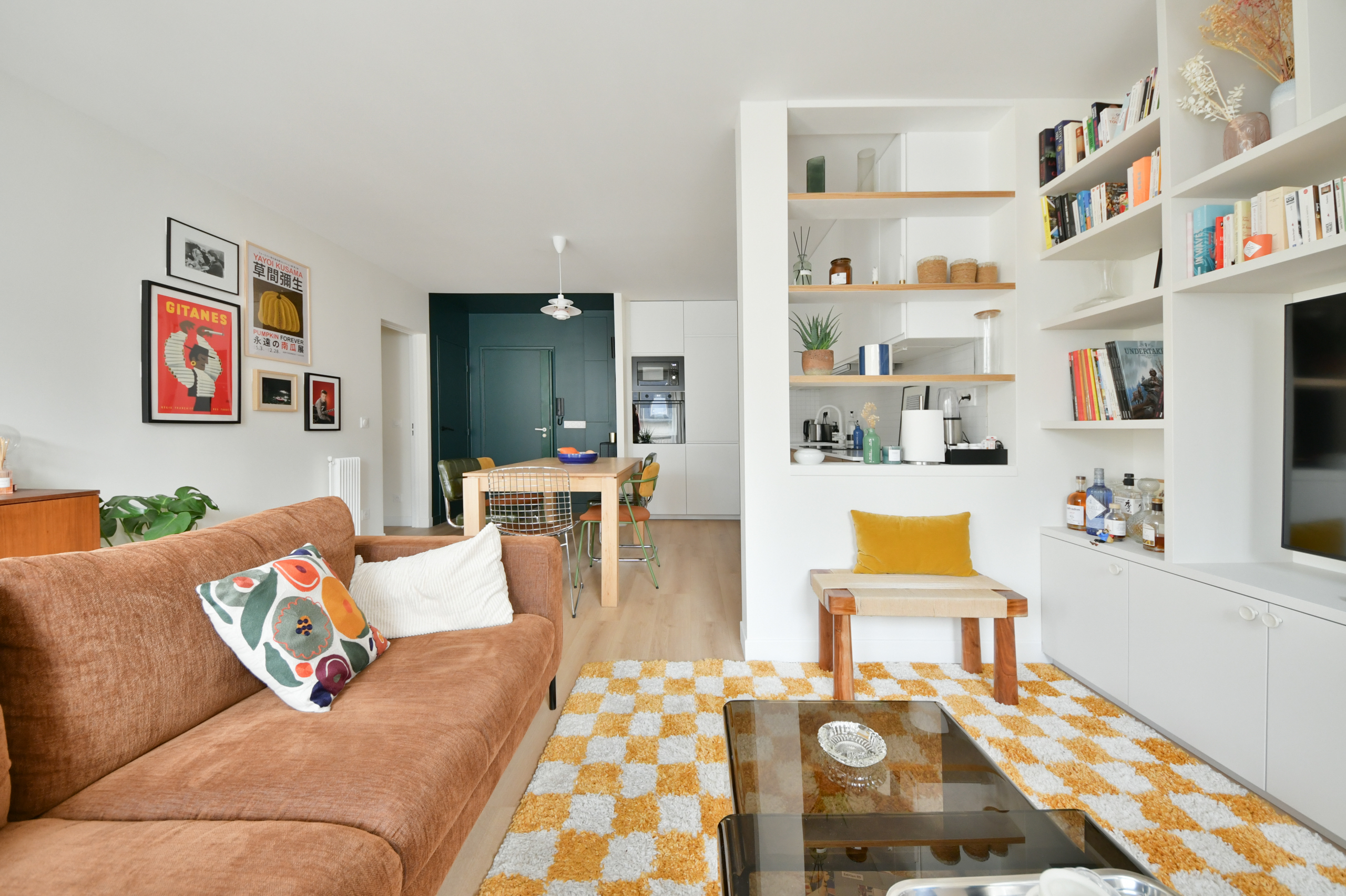Lyanes 64m2 Rénovation totale d’un appartement de 64m2 à Paris 20e.Look rétro & mobiliers colorés pour une ambiance année 60’ ultra graphique. Avant Pendant Après Notre expertise On se charge de la rénovation tous corps d’état de vos biens : De la démolition, à la mise aux normes de l’électricité De la plomberie, à l’installation de la cuisine et de la salle de bain À la peinture et aux menuiseries sur-mesure Admin1656